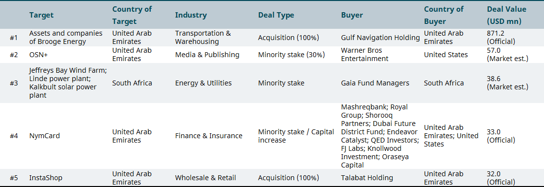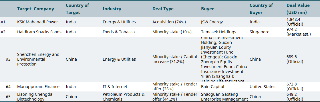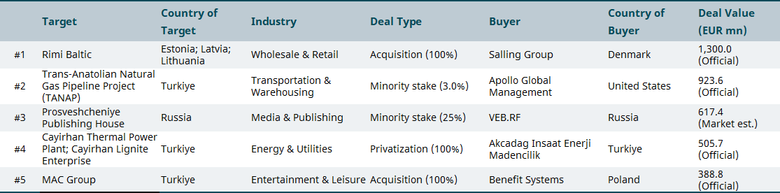 April 2025 top M&A deals in emerging markets by region
