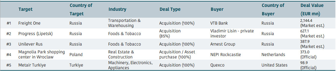 Russian financial group VTB announced the acquisition of Freight One (PGK), Russia’s leading private freight carrier, through the newly registered Aurora Invest JSC. The acquisition, finalized in late 2023, was valued at over RUB 200bn (EUR 2.1bn), including debt. Aurora Invest is reportedly linked to the family of Salman Babayev, former vice president of Russian Railways. PGK, founded in 2007 and spun off from Russian Railways, operates around 90,000 railcars. VTB is Russia's second-largest lender.