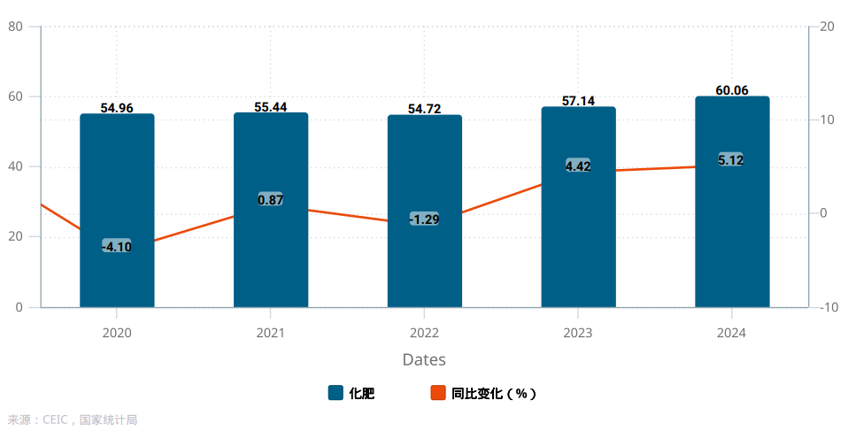 2024年,我国化肥产量同比增长5.1%,达到6,010万吨。同期农药产量同比大幅增长37.6%,至370万吨。尽管产量有所提升,农药行业仍面临严重的产能过剩的问题,杀虫剂、杀菌剂和除草剂这三大类化学农药的产能利用率仅维持在30%-60%之间。2024年,由于供应过剩,这三类产品的价格均下跌5%-10%。