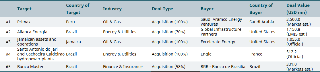April 2025 top M&A deals in emerging markets by region
