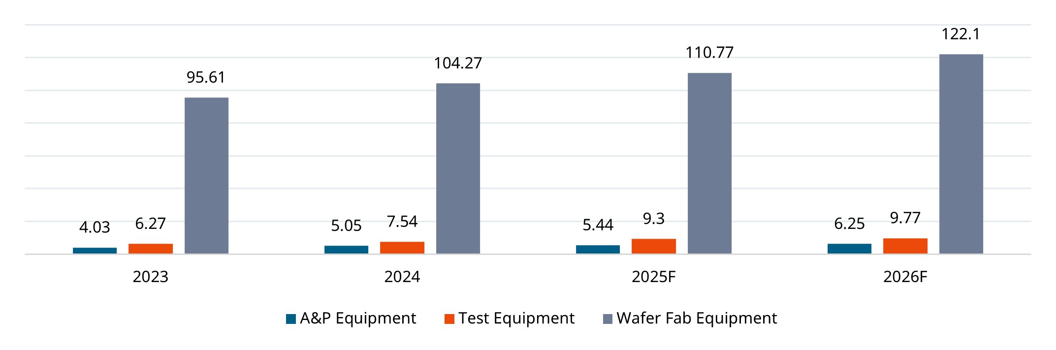 Total Semiconductor Equipment Sales Forecast, USD bn