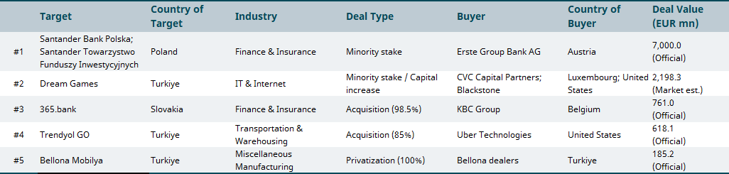 Austrian Erste Group will acquire a 49% stake in Santander Bank Polska, and 50% of fund manager Santander TFI for EUR 7bn in an all-cash deal. Funded through internal resources, including a cancelled share buyback and reduced 2025 dividend payout, the deal values Santander Bank Polska at 2.2x its Q1 2025 tangible book value. The acquisition of Poland's third-largest bank significantly expands Erste’s footprint in one of Europe’s fastest-growing and most profitable banking markets.