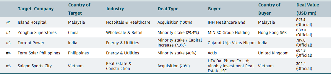 Malaysia-based IHH Healthcare announced it will acquire Island Hospital for MYR 3.92bn (USD 897.4mn) through its subsidiary, Pantai Holdings. The acquisition will expand IHH Healthcare's medical operations and increase its presence in Penang, Malaysia, by adding more hospitals and operational beds. Founded in 1994, Island Hospital provides medical and surgical services with 600 beds and over 80 specialists. IHH Healthcare operates over 80 hospitals across 10 countries.